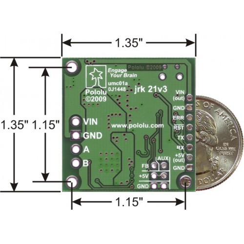 The jrk 21v3 is the smaller of two jrk motor controllers. For a higher-power version, see the jrk 12v12
