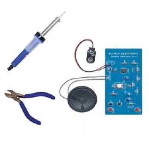 This kit is a must for the beginner. After practicing your soldering techniques on the special area of the board; you will be ready to assemble this European siren with flashing LED's. This kit also includes a soldering iron and wire cutters.